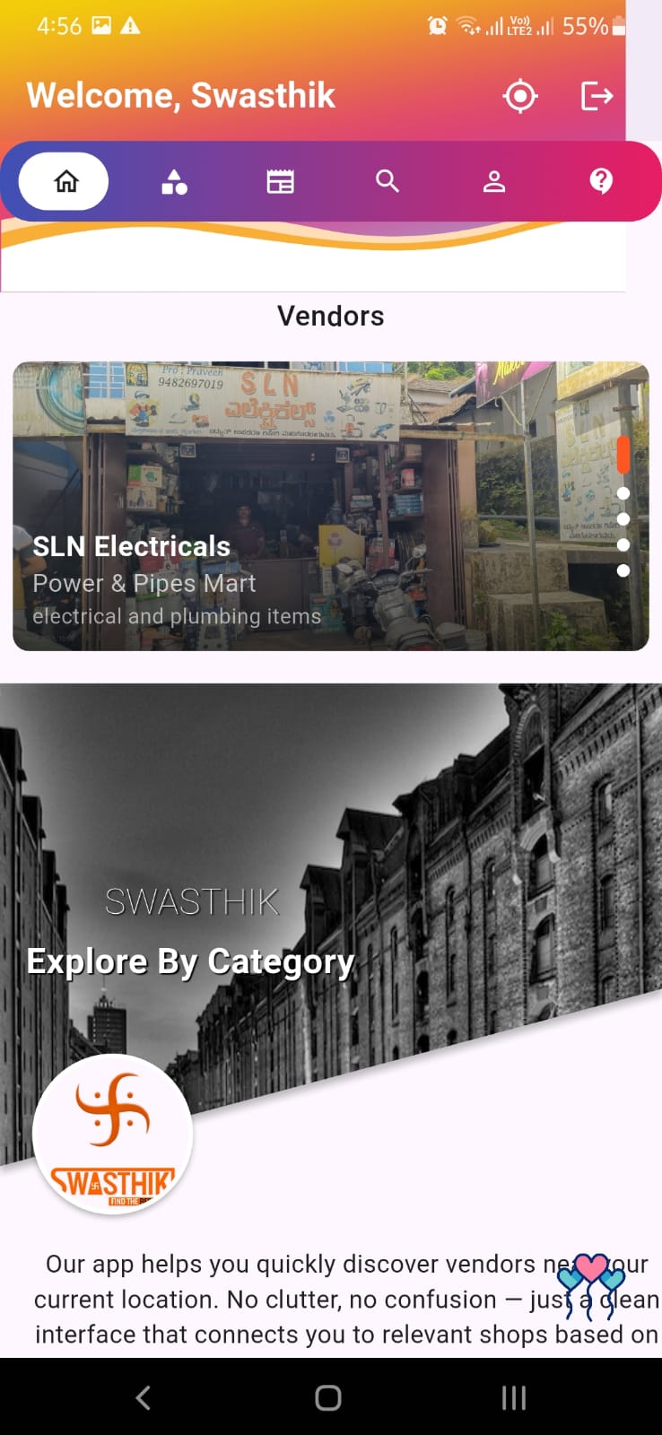 Discover local vendors near you — organized by location and category. Whether you're looking for groceries, salons, services, or more, our app makes finding shops fast and easy.